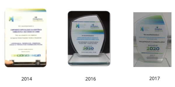 Pelo comprometimento com a Agenda Global de Hospitais Verdes e Saudáveis, as Unidades de Farmácia de Alto Custo foram reconhecidas com o Troféu de Membro Engajado em diversas edições.